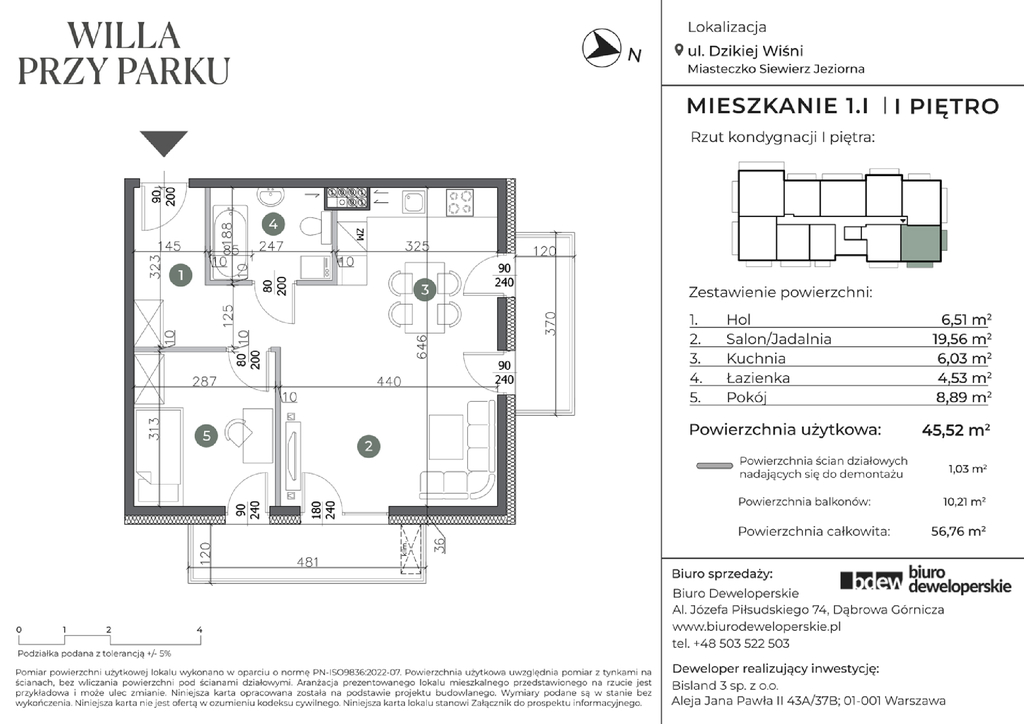 Inwestycja oferuje 37 mieszkań o różnej powierzchni oraz 3 lokale usługowe. Mieszkania wyróżniają się wysokością pomieszczeń wynoszącą 275 cm, co zapewnia przestrzeń i poczucie swobody. Każde z mieszkań posiada balkon lub ogród, co dodatkowo wzbogaca przestrzeń życiową i umożliwia kontakt z naturą.