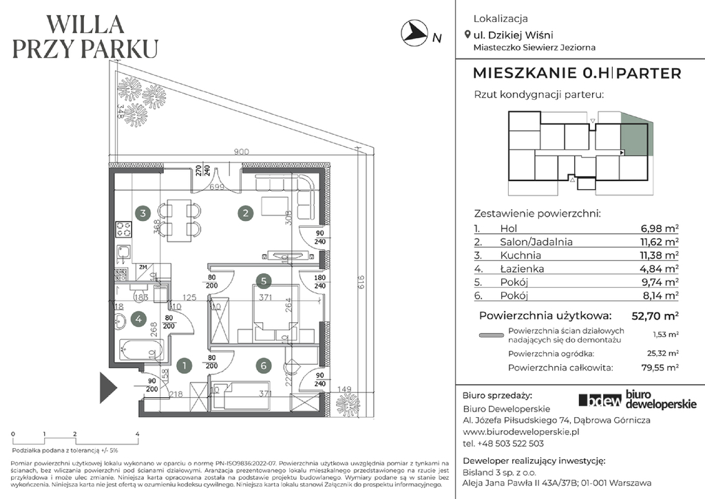 Inwestycja oferuje 37 mieszkań o różnej powierzchni oraz 3 lokale usługowe. Mieszkania wyróżniają się wysokością pomieszczeń wynoszącą 275 cm, co zapewnia przestrzeń i poczucie swobody. Każde z mieszkań posiada balkon lub ogród, co dodatkowo wzbogaca przestrzeń życiową i umożliwia kontakt z naturą.