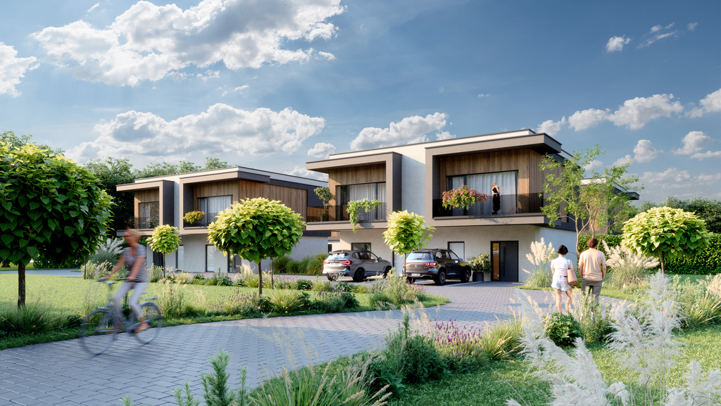 Prywatne ogrody od 80 do 150 m² są naturalnym przedłużeniem salonu – miejscem porannej kawy, letnich spotkań z bliskimi i odpoczynku po intensywnym dniu. Do dyspozycji mieszkańców przewidziano również dwa indywidualne miejsca postojowe przy każdym domu, zapewniające wygodę i swobodę użytkowania na co dzień.