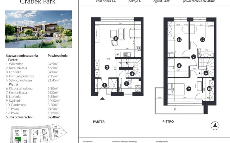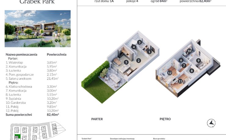 Grabek Park to kameralna inwestycja stworzona z myślą o osobach, które oczekują od miejsca zamieszkania czegoś więcej niż tylko metrażu. W ramach osiedla powstaje 20 eleganckich domów w zabudowie bliźniaczej o powierzchni 82 m², zaprojektowanych w nowoczesnej architekturze i z dbałością o komfort codziennego życia.