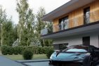 Parter: dwustanowiskowy garaż w bryle domu, pomieszczenie gospodarcze, wiatrołap, kuchnia, WC, strefa dzienna, spiżarnia