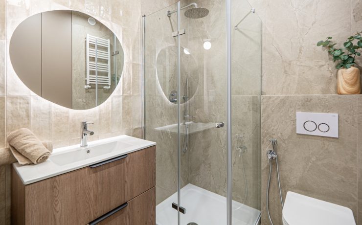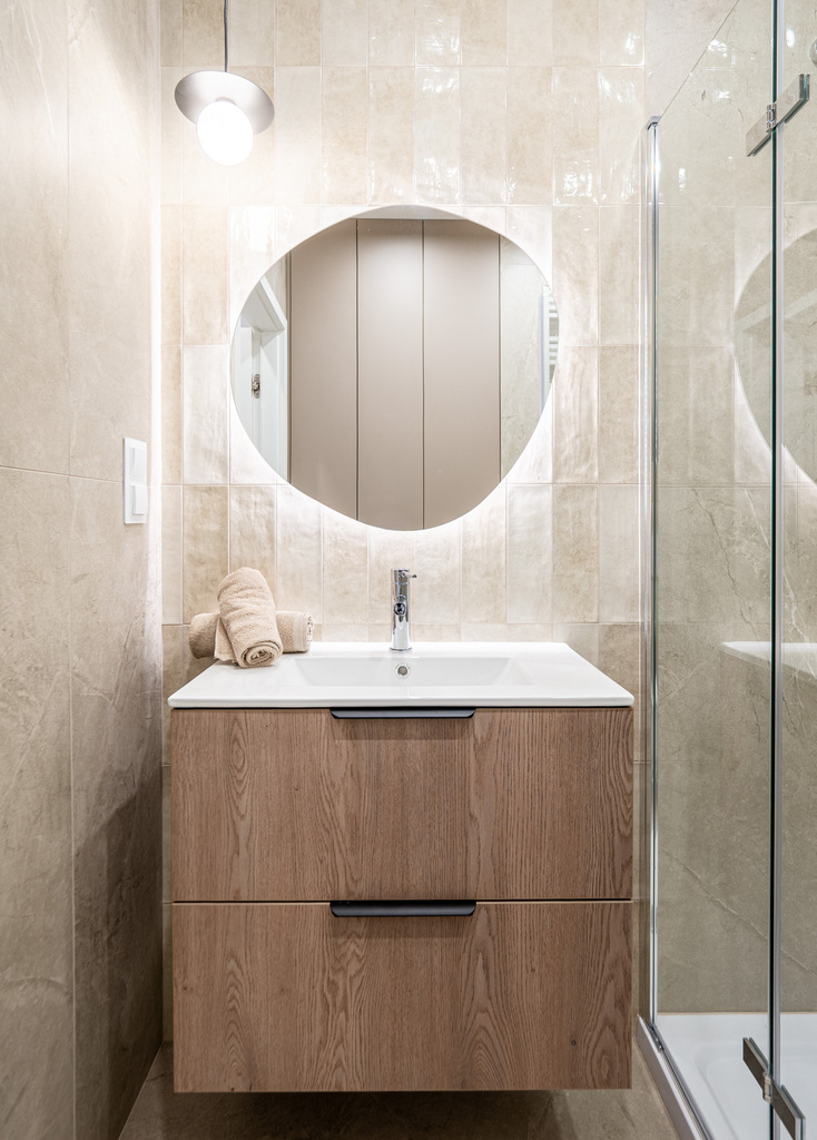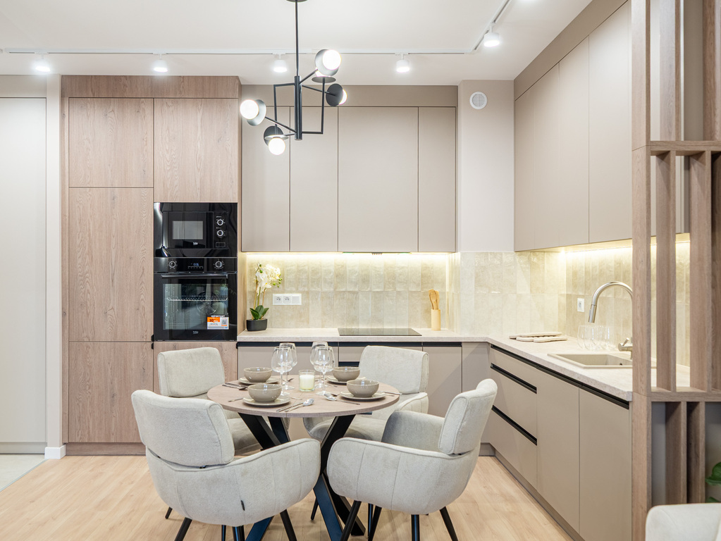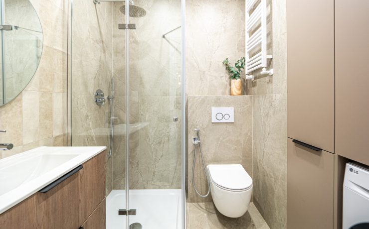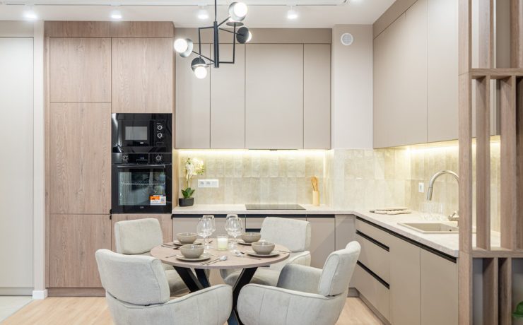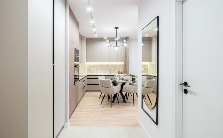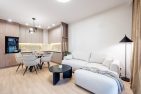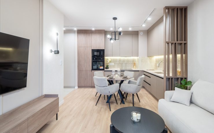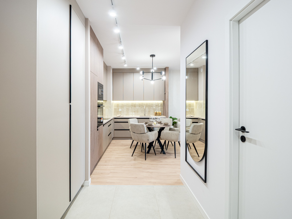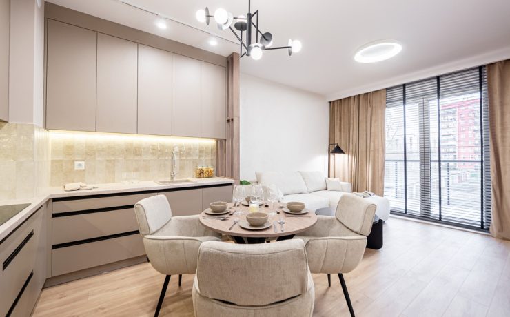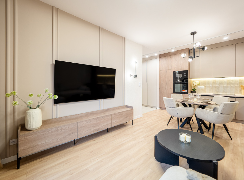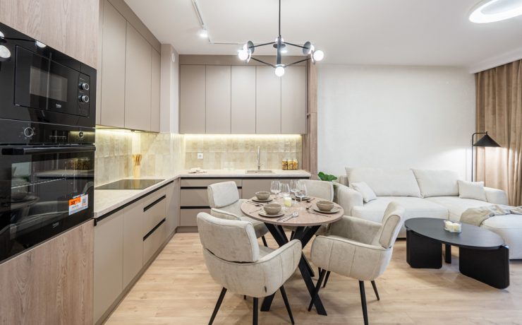Mieszkanie zostało zaprojektowane przez doświadczonego architekta wnętrz, łącząc nowoczesną stylistykę z maksymalną funkcjonalnością przestrzeni. Do wykończenia użyto wysokiej jakości materiałów, zabudowy meblowe wykonane są na wymiar przez stolarza. Mieszkanie jest wyposażone w sprzęty takie jak płyta indukcyjna, piekarnik, kuchenka mikrofalowa, lodówka w zabudowie, pralka czy telewizor. Jest kompletnie umeblowane i gotowe do zamieszkania.