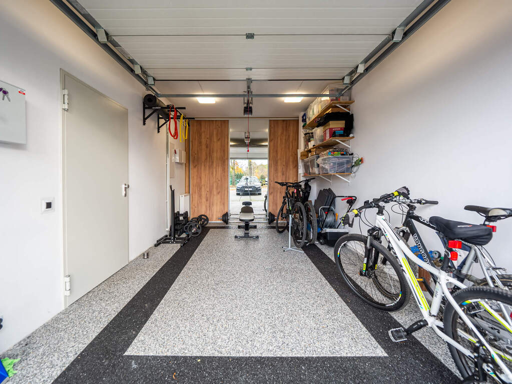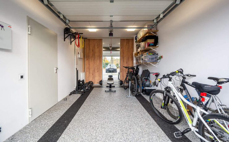 Garaż jednostanowiskowy , wyposażony w zabudowę ułatwiającą utrzymanie porządku oraz w nowoczesną, zdalnie sterowaną bramę garażową . Domofon i videofon.