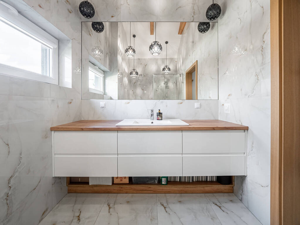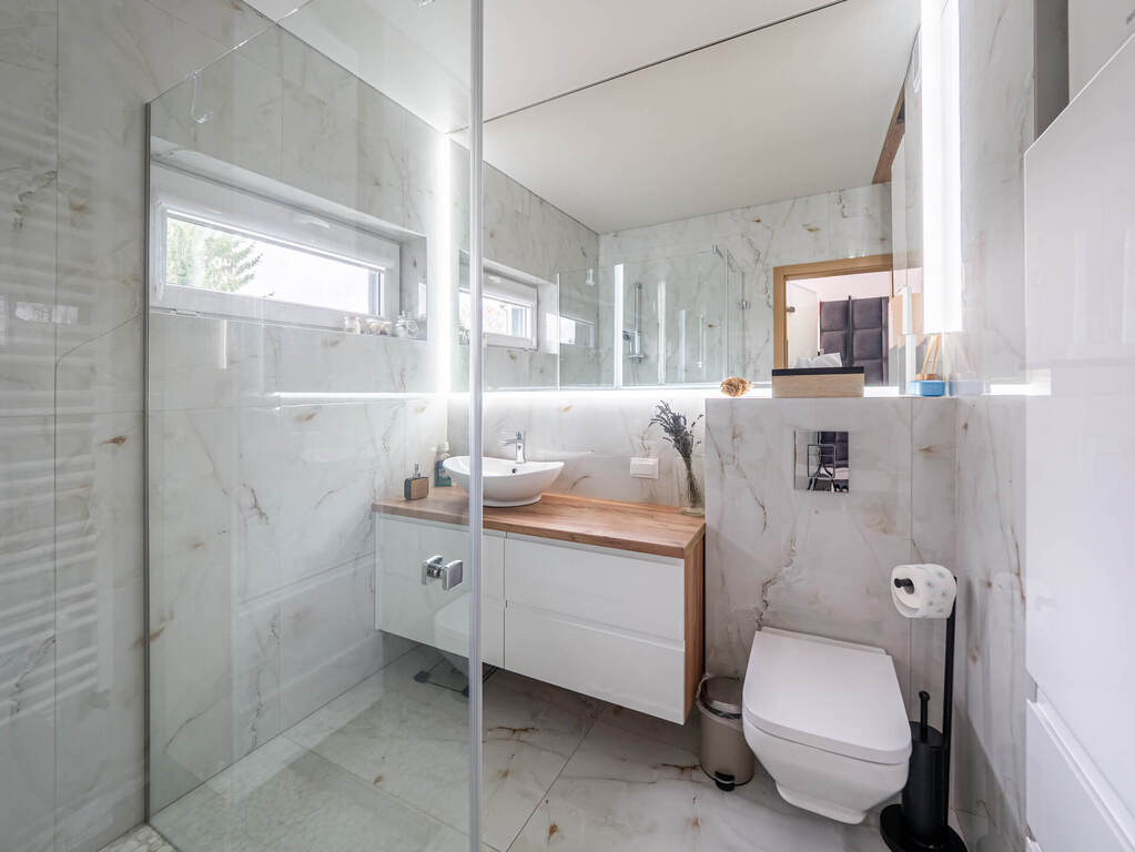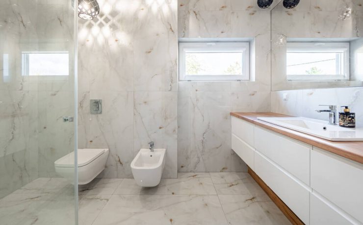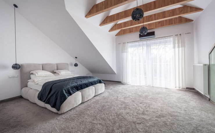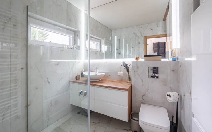 Wewnątrz rozprowadzono instalacje: elektryczną , wodno-kanalizacyjną oraz klimatyzacyjną- w całym domu.