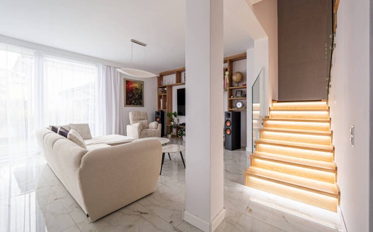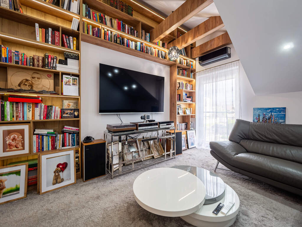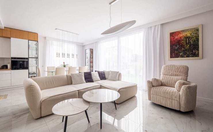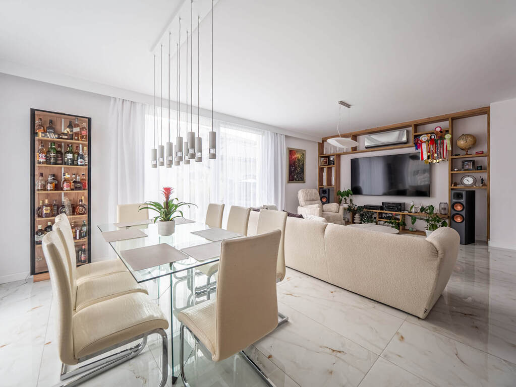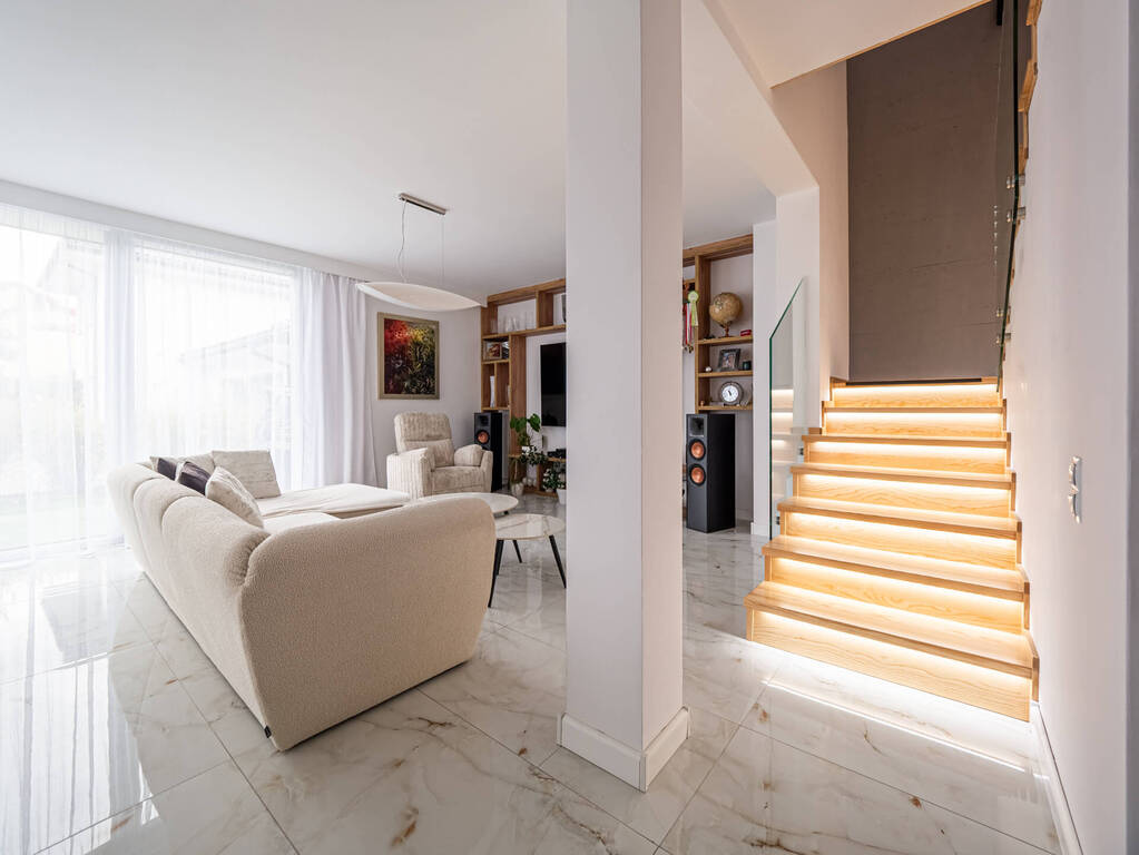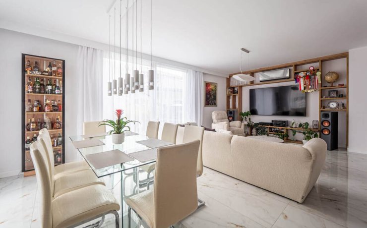 Wnętrze gustownie zaaranżowane i wykończone w nowoczesnym standardzie, większość mebli została wykonana na wymiar aby zoptymalizować funkcjonalność użytkowania.