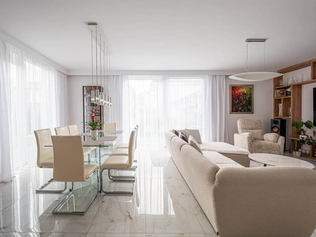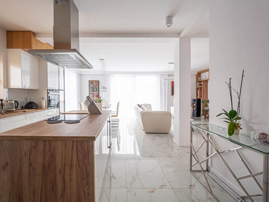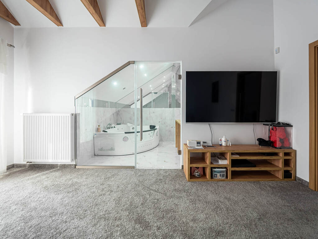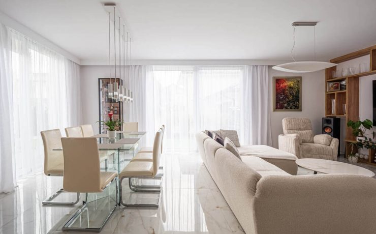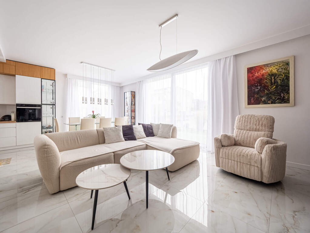 Wnętrze gustownie zaaranżowane i wykończone w nowoczesnym standardzie, większość mebli została wykonana na wymiar aby zoptymalizować funkcjonalność użytkowania.