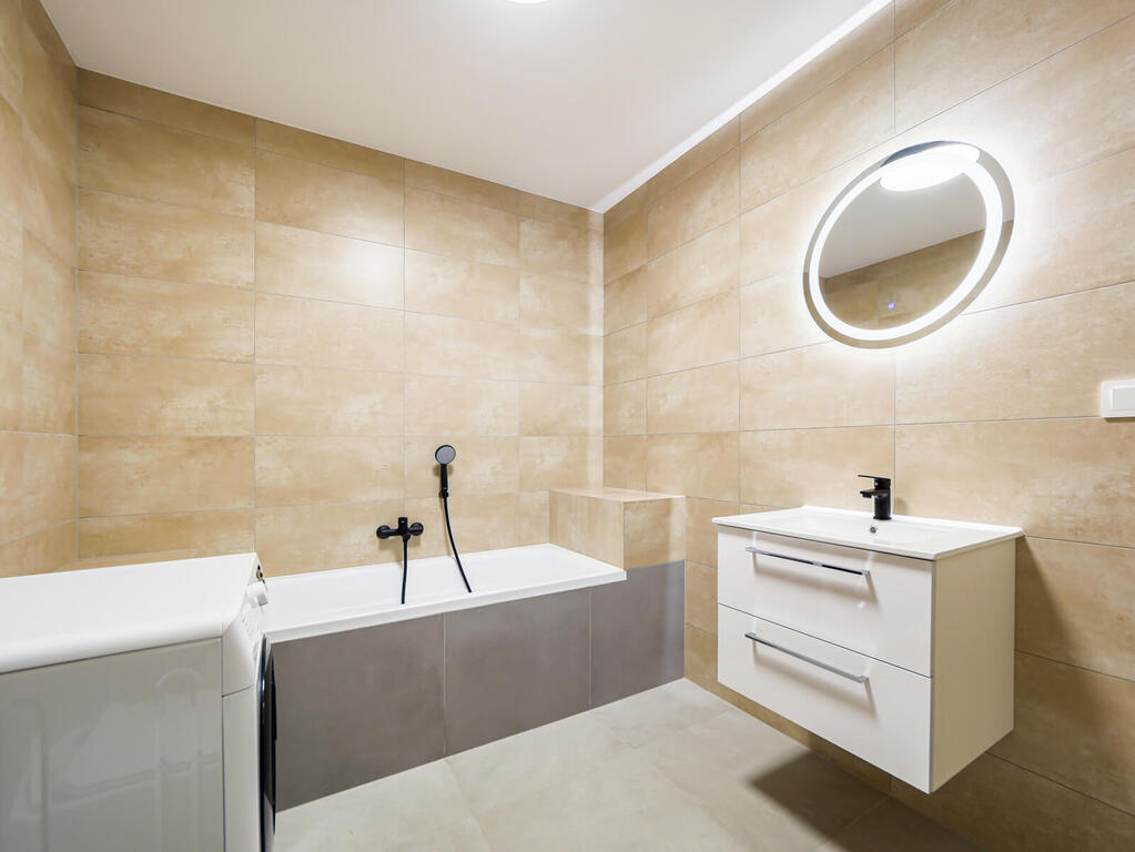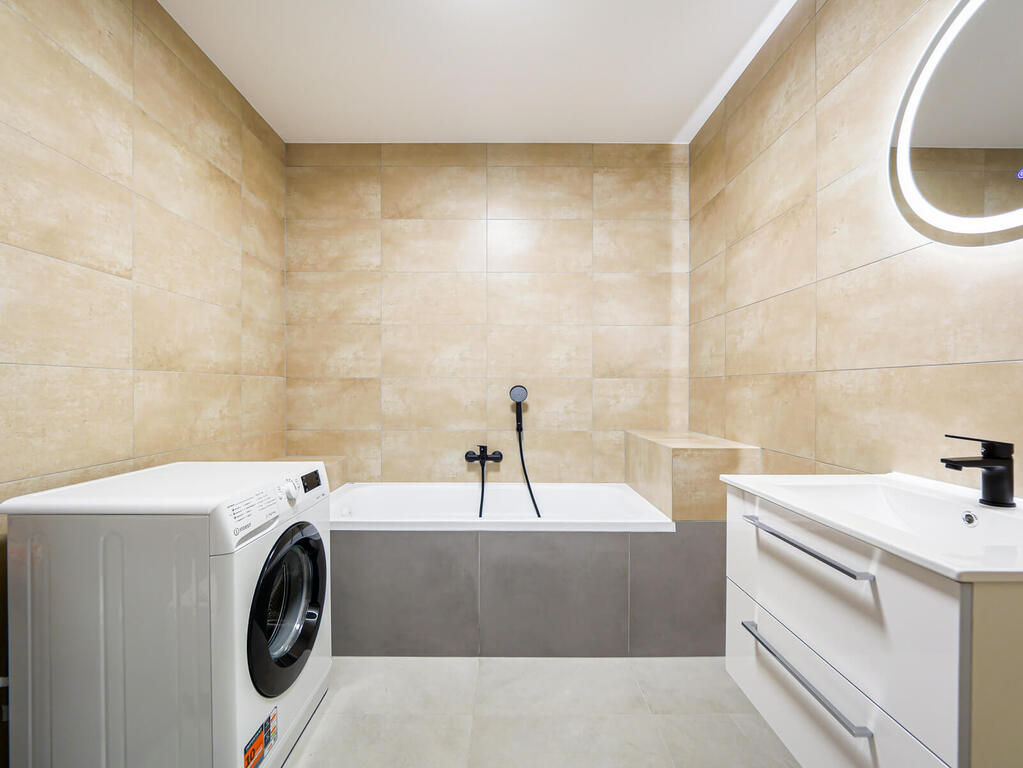 Mieszkanie o powierzchni 34 m2 składa się z: pokoju dziennego połączonego z aneksem kuchennym oraz łazienki z WC