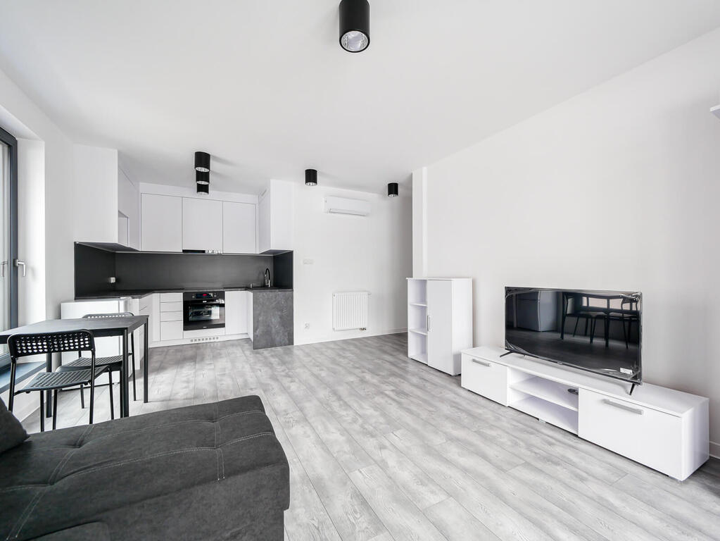Do wynajęcia kompaktowa, w pełni umeblowana kawalerka o powierzchni 34 m2 usytuowane na 1 piętrze w nowoczesnym budynku z windą.