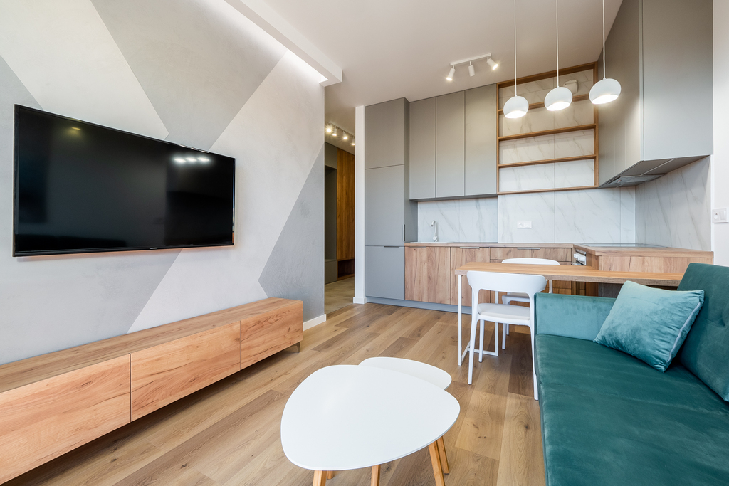 Do wynajęcia nowoczesne, w pełni wyposażone 2 pokojowe mieszkanie, o powierzchni 32 m2, urządzone bardzo funkcjonalnie, wynajmowane z pełnym wyposażeniem.