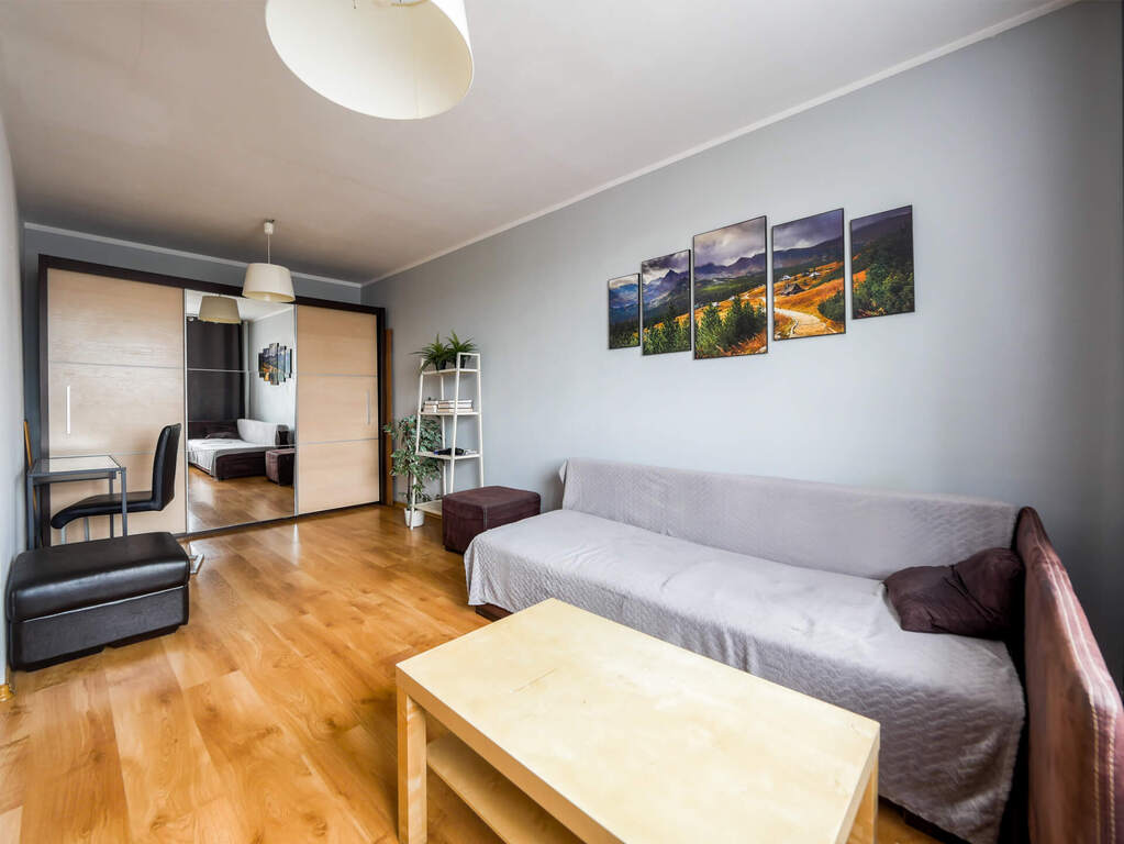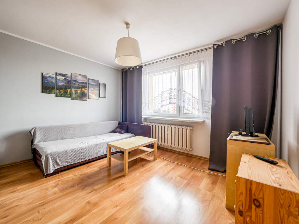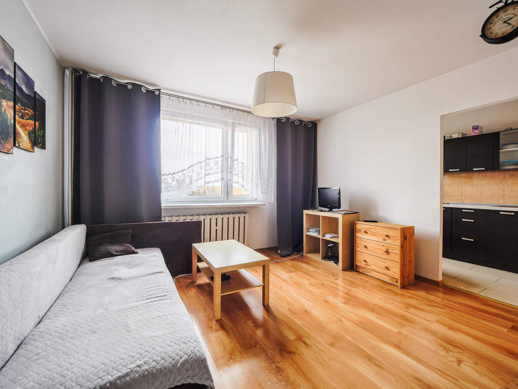 Mieszkanie wynajmowane z wyposażeniem widocznym na zdjęciach czyli m.in. : meble kuchenne wraz z AGD, wyposażenie pokoju dziennego , szafa .