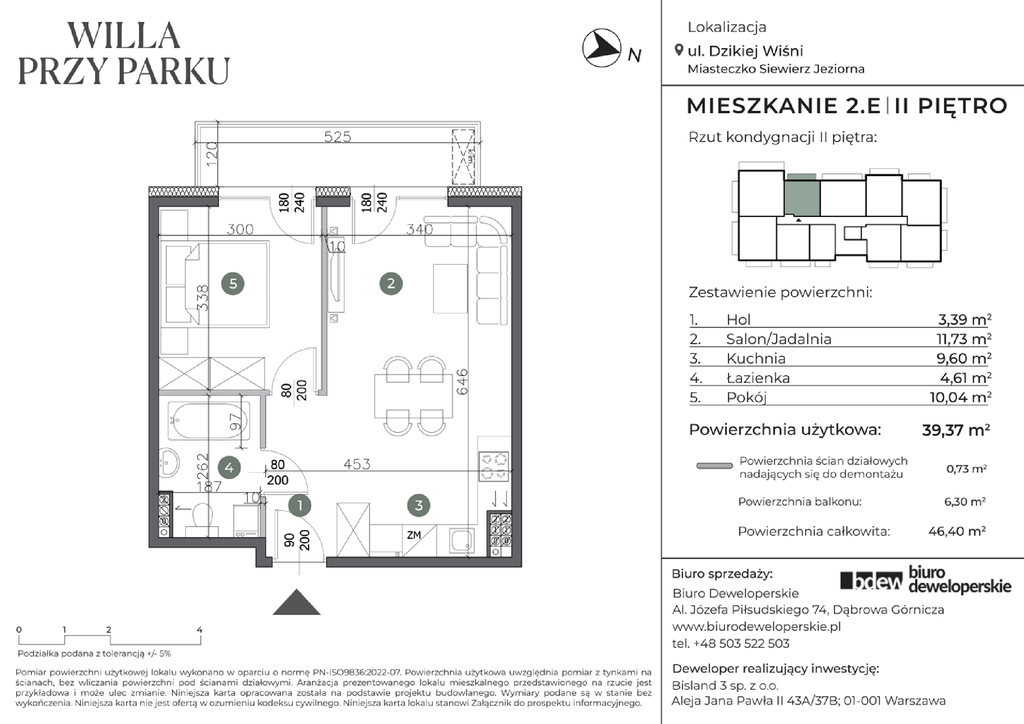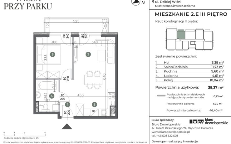 Inwestycja oferuje 37 mieszkań o różnej powierzchni oraz 3 lokale usługowe. Mieszkania wyróżniają się wysokością pomieszczeń wynoszącą 275 cm, co zapewnia przestrzeń i poczucie swobody. Każde z mieszkań posiada balkon lub ogród, co dodatkowo wzbogaca przestrzeń życiową i umożliwia kontakt z naturą.