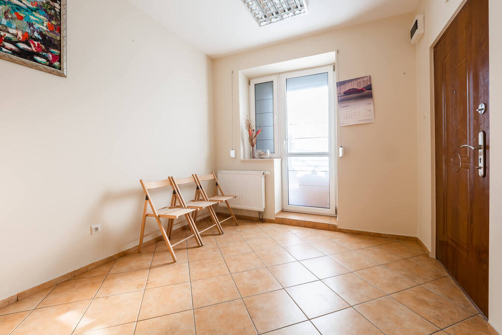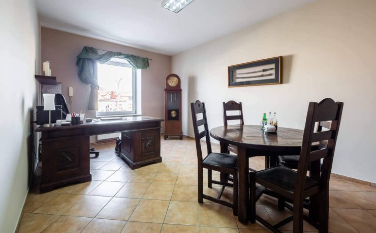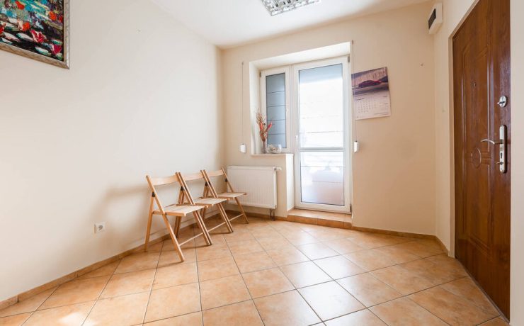 Lokal składa się z dwóch dużych ( ok.20m) gabinetów– w jednym aneks kuchenny, łazienki, zaplecza socjalnego oraz przestronnego przedpokoju- recepcja, poczekalnia.