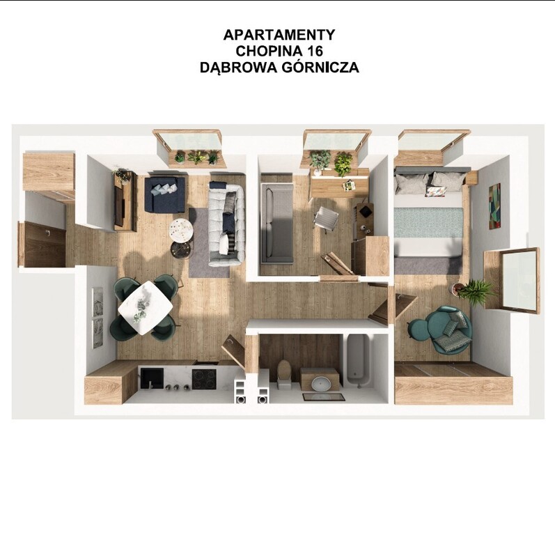Mieszkanie o funkcjonalnym układzie pomieszczeń, w skład którego wchodzi: