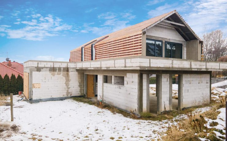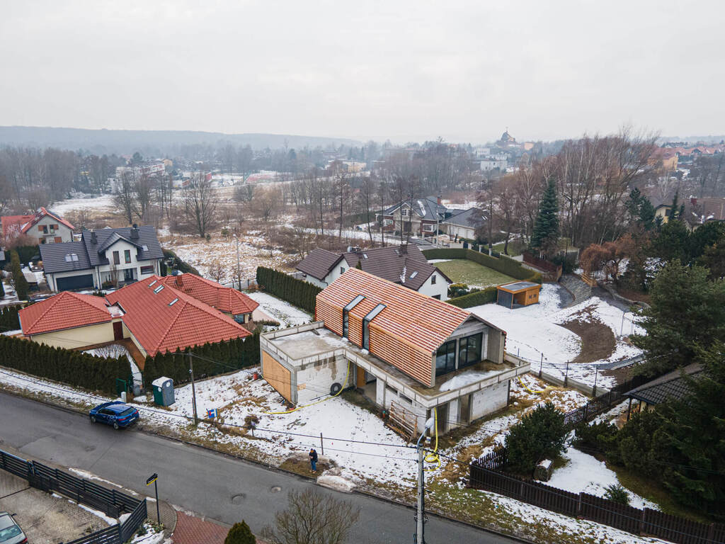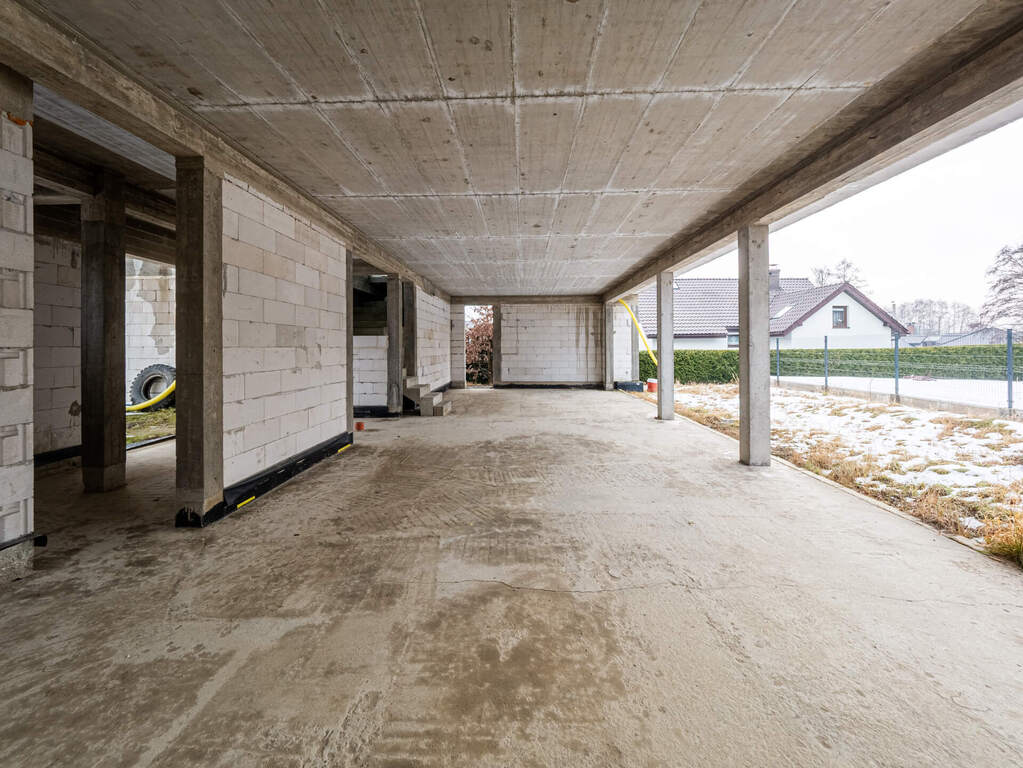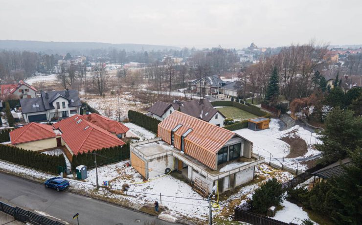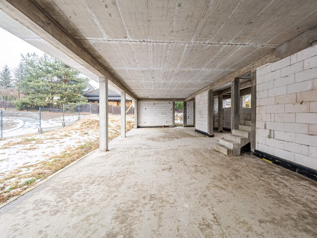 Dom wybudowany został w technologii tradycyjnie, posadowiony na ławach fundamentowych. Ściany zewnętrzne i wewnętrzne wykonane z betonu komórkowego. Dach w konstrukcji drewnianej, kryty blachą na rąbek. Dom będzie doprowadzony do stanu surowego zamkniętego. Na terenie działki znajduje się studnia deszczowa.