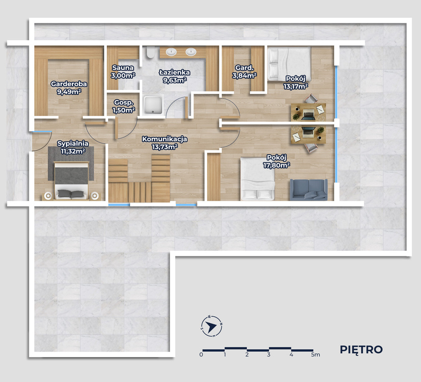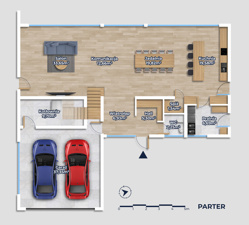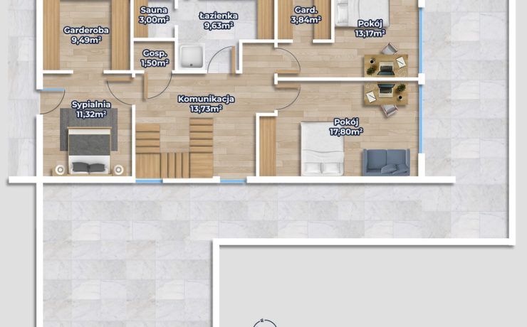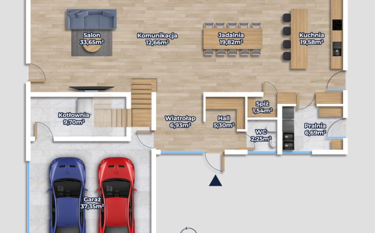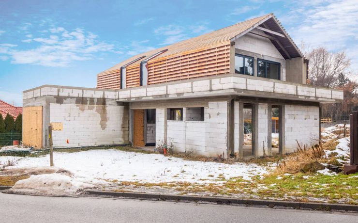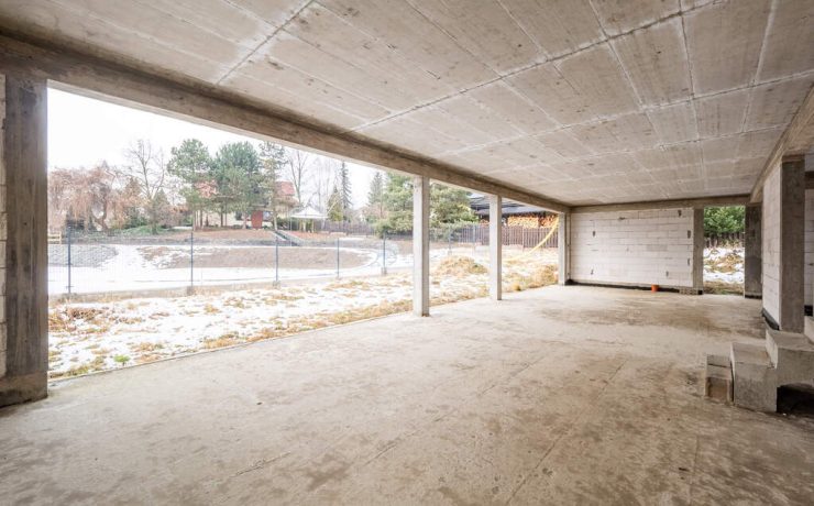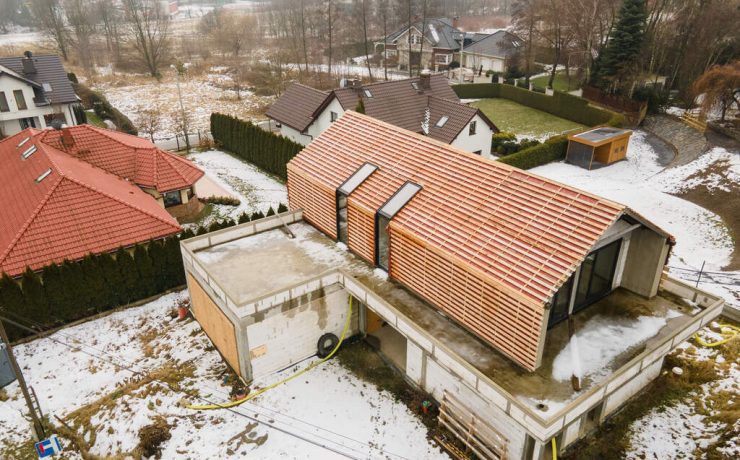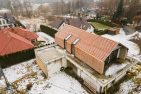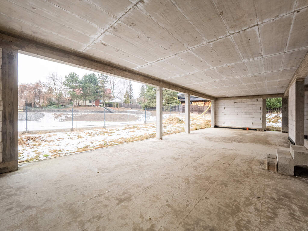 Dom wybudowany został w technologii tradycyjnie, posadowiony na ławach fundamentowych. Ściany zewnętrzne i wewnętrzne wykonane z betonu komórkowego. Ocieplenie ze styropianu o grubości 15 cm pokrytego tynkiem silikatowym. W całym domu aluminiowa, trzyszybowa stolarka aluminiowa w kolorze antracytowym. Dach w konstrukcji drewnianej, kryty blachą na rąbek. Dom będzie doprowadzony do stanu deweloperskiego. Zostaną w nim wykonane instalacje wod- kan oraz elektryczna (możliwość dostosowania na etapie wykonania). W domu zostanie zamontowany również kocioł gazowy z zasobnikiem na ciepłą wodę. Na terenie działki znajduje się studnia deszczowa.